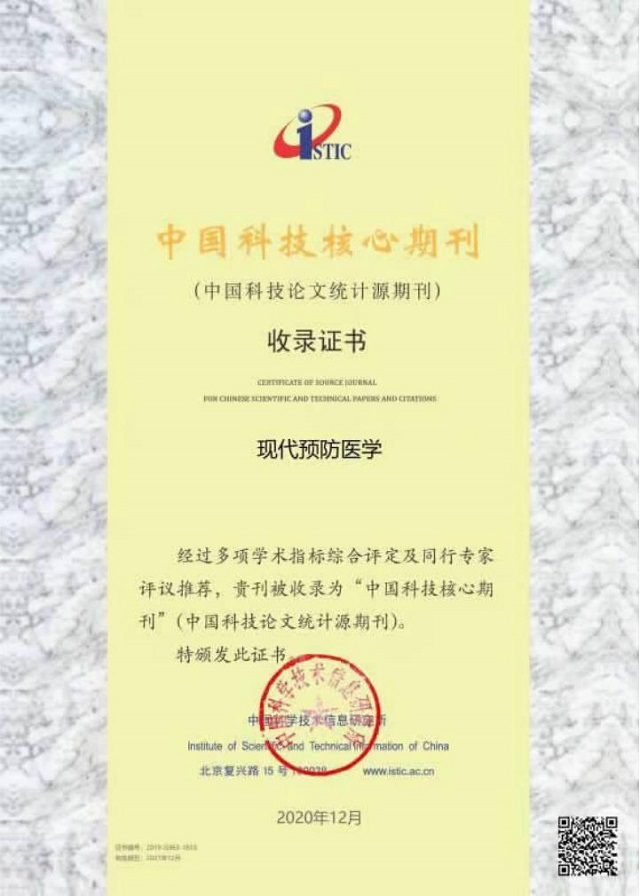 2022年,新年伊始,从《现代预防医学》编辑部传来一个喜讯,我院与四川大学华西公卫学院共同合作文章《痛风患者交流和抑郁症状现状及相关因素分析》被中华预防医学会系列杂志《现代预防医学》收录,见刊2021年12月第48卷第24期,并被知网总库收录。